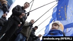 Пасьля рэгістрацыі дэмакратычных кандыдатаў у прэзыдэнты сустрэлі сябры іх ініцыятыўных групаў, якія сабраліся на Кастрычніцкай плошчы каля ўваходу ў Палац рэспублікі.