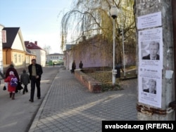 «Засталіся вісець чорна-белыя, а каляровыя пазрывалі. Мы іх учора вешалі. Там была надрукавана біяграфія Віталя Рымашэўскага».