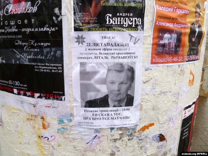 Пра агітацыйную кампанію ў Магілёве нагадваюць інфармацыйныя ўлёткі Віталя Рымашэўскага...