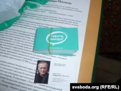 "Для таго, каб раздрукаваць улётку, яе трэба зацьвердзіць у ЦВК. Мы спрабавалі тут на мясцовым узроўні раздрукаваць, і каб Менск потым праплаціў са сваіх выбарчых фондаў. Нашы друкарні адмаўляюцца, кажуць: "Ня хочам лезьці ў палітыку". У абласную друкарню мы не зьвярталіся, бо каб зьвярнуцца туды, патрэбны дужа вялікі аб’ём. Нам такога аб’ёму не патрэбна. Нам трэба на горад 200 тысяч улётак".