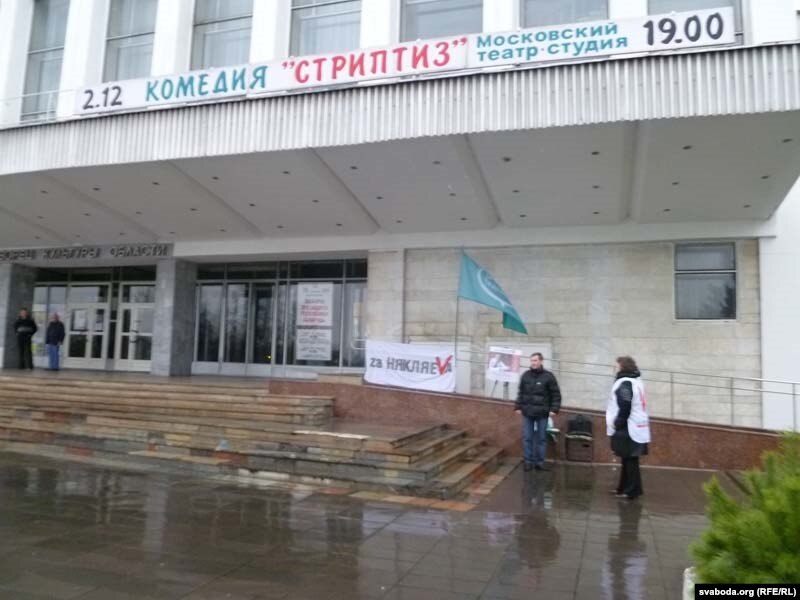 Агітацыйны пікет Уладзімера Някляева ля Палаца культуры вобласьці