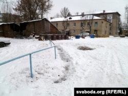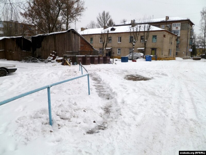 Двор, ня чышчаны ад сьнегу. Дворнікі зрабілі вузкія дарожкі.
