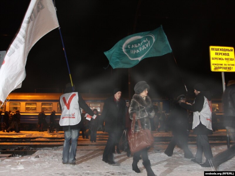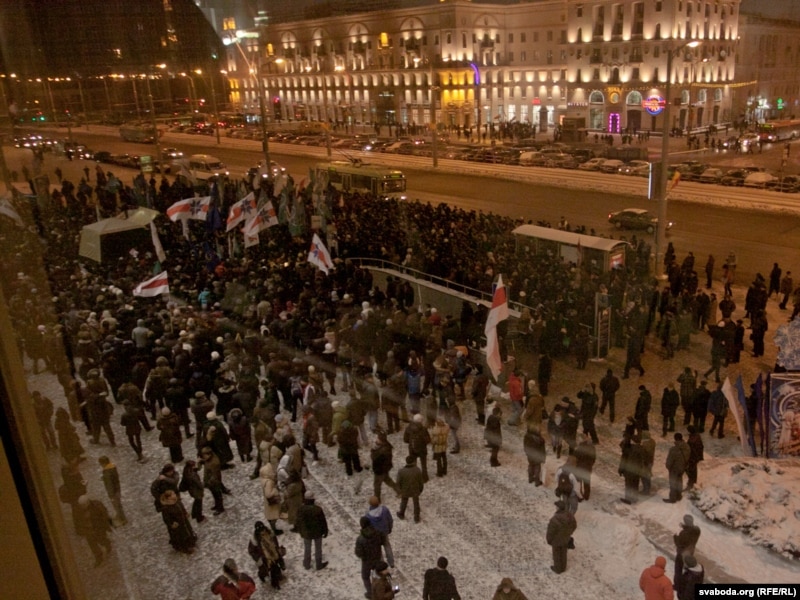 19:30 Ўладзімер Някляеў ды Андрэй Саньнікаў сышлі з Прывакзальнага пляцу. Папярэдне прагучаў заклік да людзей прыходзіць на Кастрычніцкую плошчу Менску ў Дзень салідарнасьці — 16 сьнежня. Выбарцы не разыходзяцца, танчаць і сьпяваюць пад музыку, якая гучыць з гукаўзмацняльнай апаратуры. Па-ранейшаму шмат міліцыянтаў у цывільным.