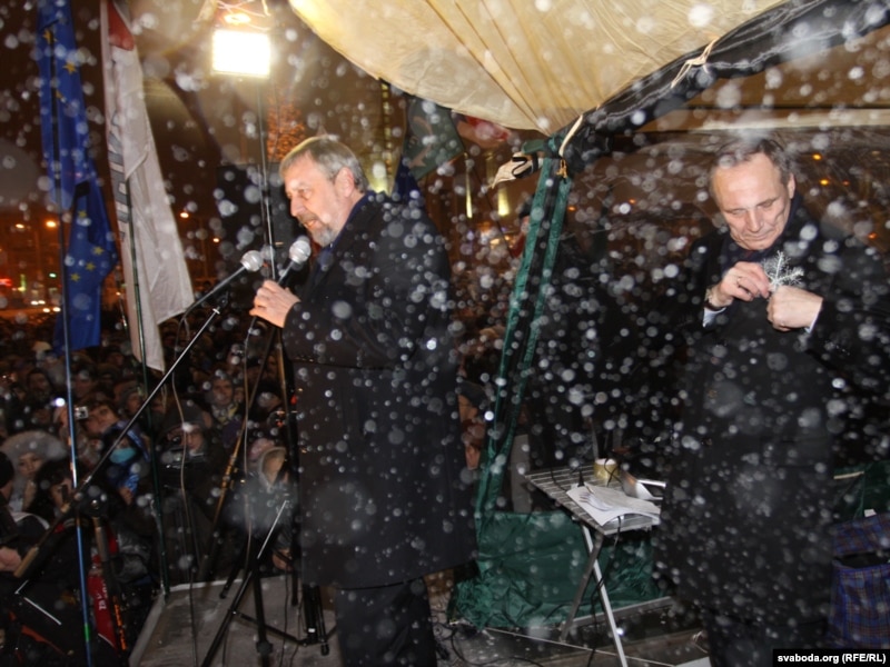 На Прывакзальнай плошчы ў Менску адбылася супольная сустрэча кандыдатаў на прэзыдэнта Ўладзімера Някляева ды Андрэя Саньнікава з выбарцамі. Паводле штабу Някляева, у сустрэчы ўзялі ўдзел больш за 2000 чалавек.