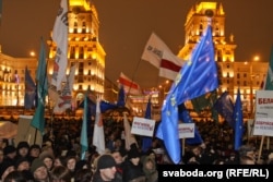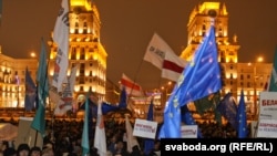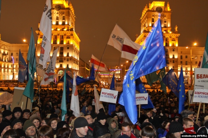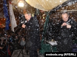 18:55 Уладзімер Някляеў і Андрэй Саньнікаў паставілі свае подпісы пад заклікам на вялікім плякаце "Патрабуем дадатковых выступаў кандыдатаў на ТБ". Някляеў і Саньнікаў запрашаюць людзей выходзіць на Плошчу ўвечары 19 сьнежня. На Прывакзальнай плошчы Менску лунаюць бел-чырвона-белыя сьцягі, а таксама сьцягі Беларускай Хрысьціянскай Дэмакратыі, кампаніяў "Эўрапейская Беларусь" ды "Гавары праўду!".
