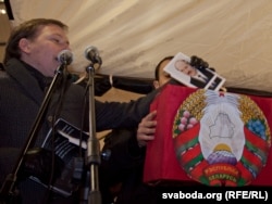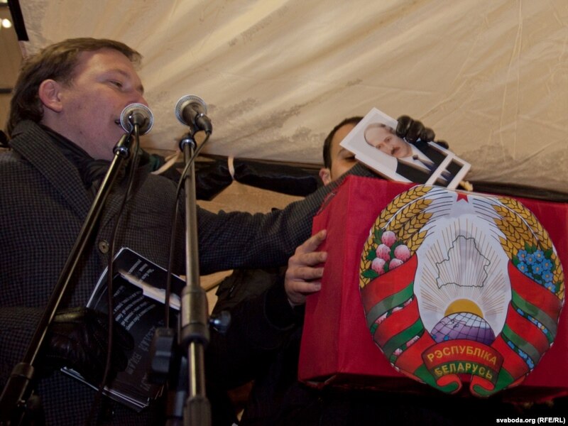 18:30 Сябры ініцыятыўнай групы Ўладзімера Някляева ўсталявалі перад выступоўцамі 2 скрыні, якія нагадваюць скрыні для галасаваньня: адну празрыстую, а другую — зь дзяржаўным гербам. У першую ўкінулі партрэт Някляева, у другую — Лукашэнкі.
