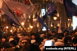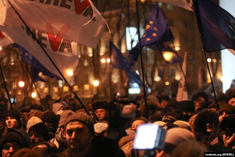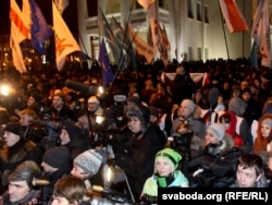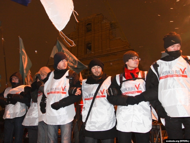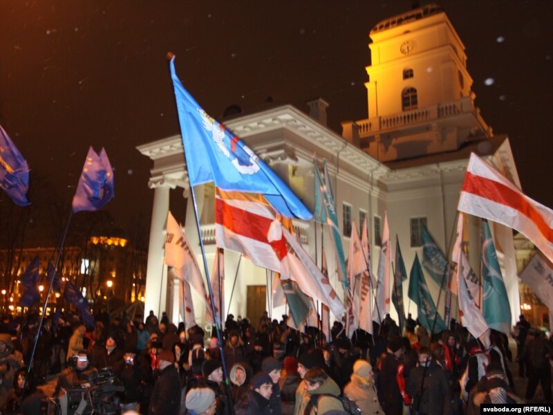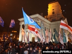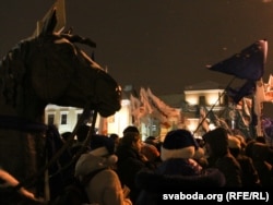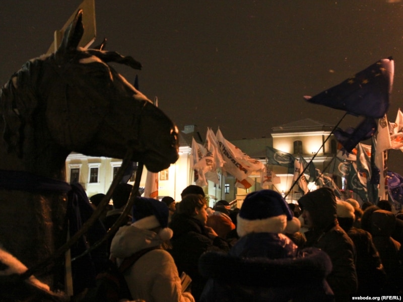 18:20 На плошчы каля тысячы чалавек. Сярод іх кандыдат у прэзыдэнты Андрэй саньнікаў, старшыня партыі «Справядлівы сьвет» Сяргей Калякін. Кіраўнік ініцыятыўнай групы Ўладзімера Някляева Андрэй Дзьмітрыеў заклікаў прысутных прыходзіць на Кастрычніцкую плошчу ўвечары 19 сьнежня.