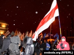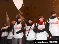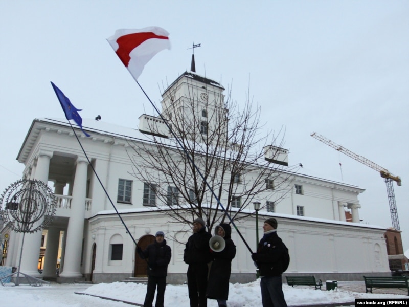 17:45 Актывісты, якія стаяць на рагу праспэкту Незалежнасьці і вуліцы Леніна, каля ГУМа і Макдоналдса, праз рупары запрашаюць мінакоў на сустрэчу з Саньнікавым і Някляевым на плошчы Свабоды.