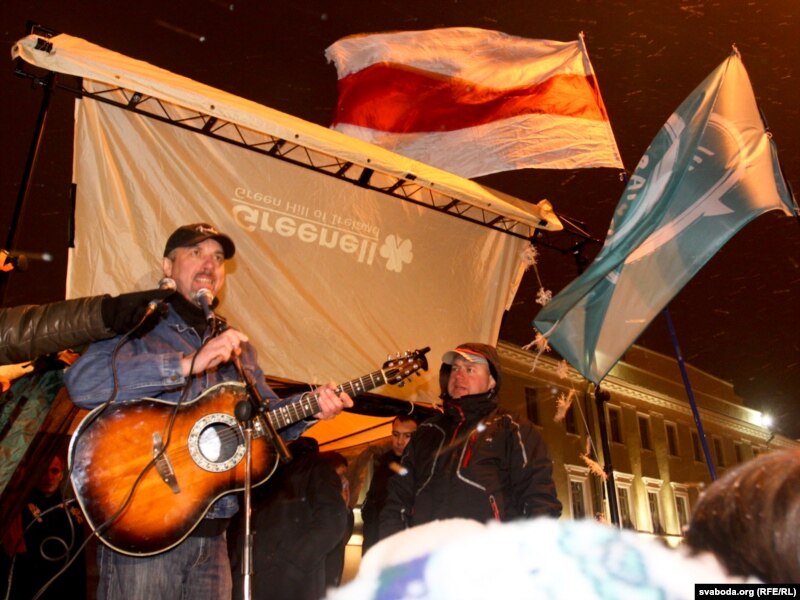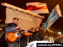 Сьпявак Зьміцер Вайцюшкевіч пад воплескі натоўпу заявіў: «Ня Саня застанецца з намі. З намі застануцца бел-чырвона-белы сьцяг і герб «Пагоня».