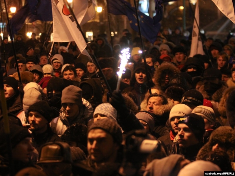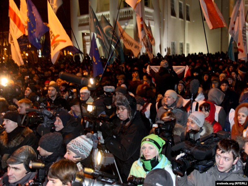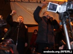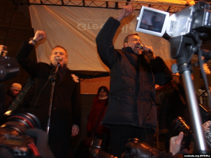 19:00 На разьвітаньне Андрэй Саньнікаў і Ўладзімер Някляеў разам зачыталі верш «А хто там ідзе…». Гучаць заклікі прыйсьці на плошчу 19 сьнежня.
