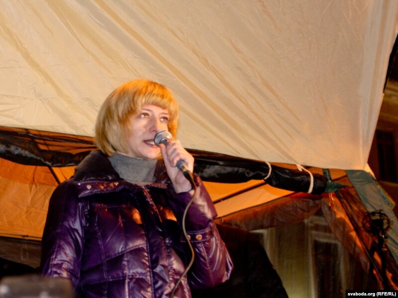 «Сёньня праходзяць акцыі салідарнасьці па ўсім сьвеце, акцыі барацьбы за правы чалавека. І мы блізкія да перамогі, новай і незалежнай Беларусі. Лукашэнка перапужаны, і ўсё ідзе па старым сцэнары — у нас хочуць скрасьці нашы гаасы. Народу патрэбныя выбары, а не фальшаваньне. Народу не патрэбны апошні дыктатар эўропы.