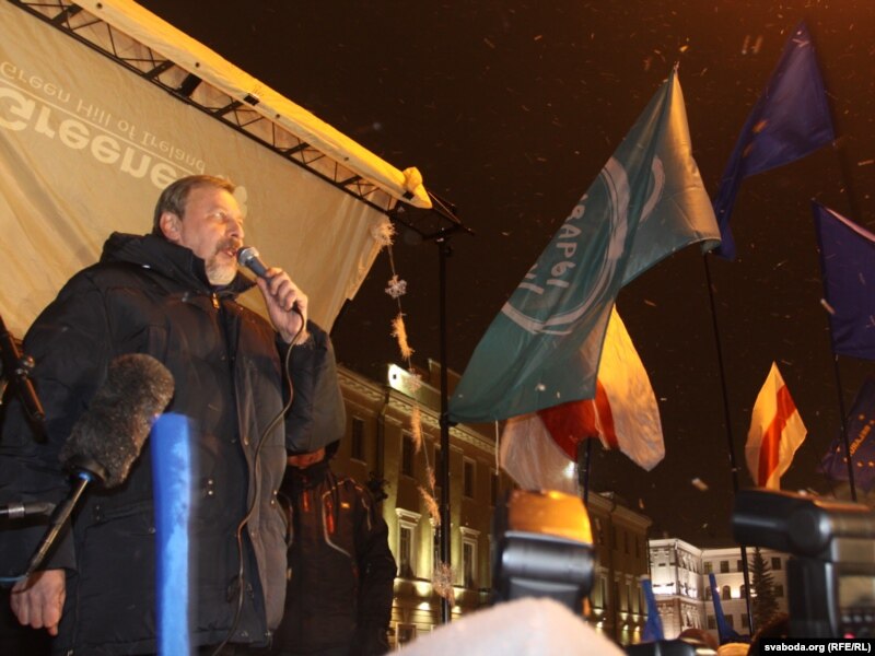 18:35 На мітынгу выступіў Андрэй Саньнікаў.