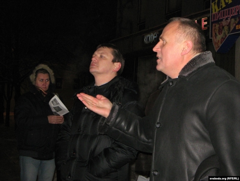 Статкевіч: «Дзякуй, што прыйшлі на сустрэчу з намі, хаця яна праходзіць у некамфортнай сытуацыі, холадна. Але я думаю, што можа быць нават добра, што людзі ў вашым горадзе ўбачаць, што ёсьць тыя, хто ня згодны з тым, што адбываецца з нашай краінай. Адзін чалавек, абраны на сумленных выбарах, адмяніў гэтыя выбары! Прысвоіў уладу і цяпер, напэўна, зьяўляецца, юрыдычна і па сумленьні, былым прэзыдэнтам! Нашая мэта, мая і Дзмітрыя Вуса, расказаць вам, што адбываецца з выбарчай сыстэмай у нашай краіне. Мы не зьбіраемся абяцаць вам працоўныя месцы, пэнсіі, гэта ўсё неразумна і немагчыма — выбараў няма! Не спадзявайцеся, вашыя галасы зноў скрадуць! Мы павінны супраціўляцца гэтаму, мы павінны вярнуць сабе выбары!»