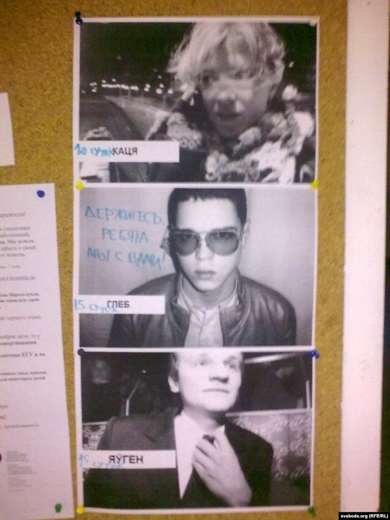 «Іх 12, шасьцёра ўжо асуджаныя. Далі ім па 15 сутак, адной толькі дзяўчыне — 10. У многіх затрыманых — дужа сур’ёзныя траўмы. Мы зьбіраем для іх рэчы і пішам лісты падтрымкі. Таксама ў фае ЭГУ вісіць сьпіс затрыманых, на сьценах — партрэты затрыманых з подпісамі накшталт „Трымайцеся, мы з вамі“. І вісіць бел-чырвона-белы сьцяжок з чорнай стужкай».
