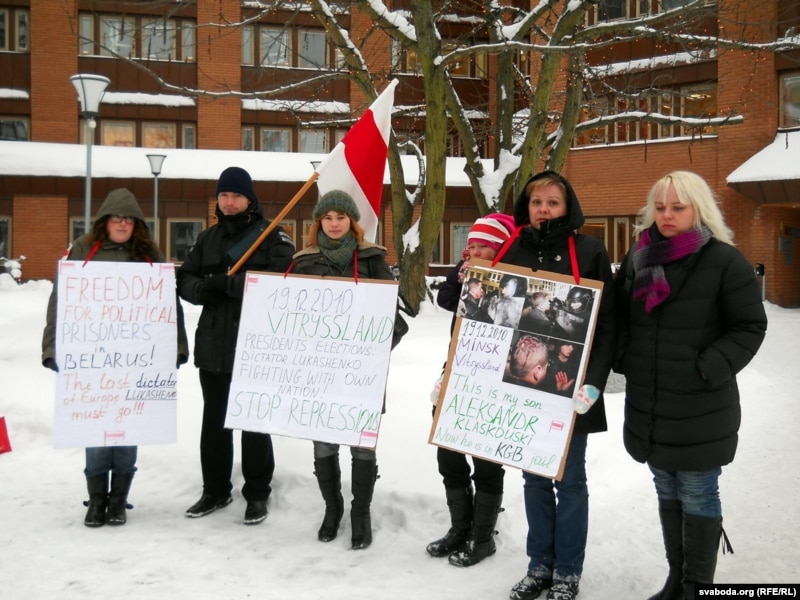 Сёньня з патрабаваньнем вызваліць усіх затрыманых да амбасады Беларусі ў Стакгольме прыйшлі прадстаўнікі беларускай дыяспары, грамадзкія дзеячы Швэцыі. Арганізатарка акцыі — Вольга Класкоўская, сястра былога міліцыянта Аляксандра Класкоўскага, якога спачатку зьбілі на плошчы Незалежнасьці ў Менску 19 сьнежня, а пасьля штурмам захапілі ва ўласнай кватэры. Учора, як расказала Вольга, Аляксандру таксама было прад’яўленае абвінавачаньне ў арганізацыі «масавых беспарадкаў»: