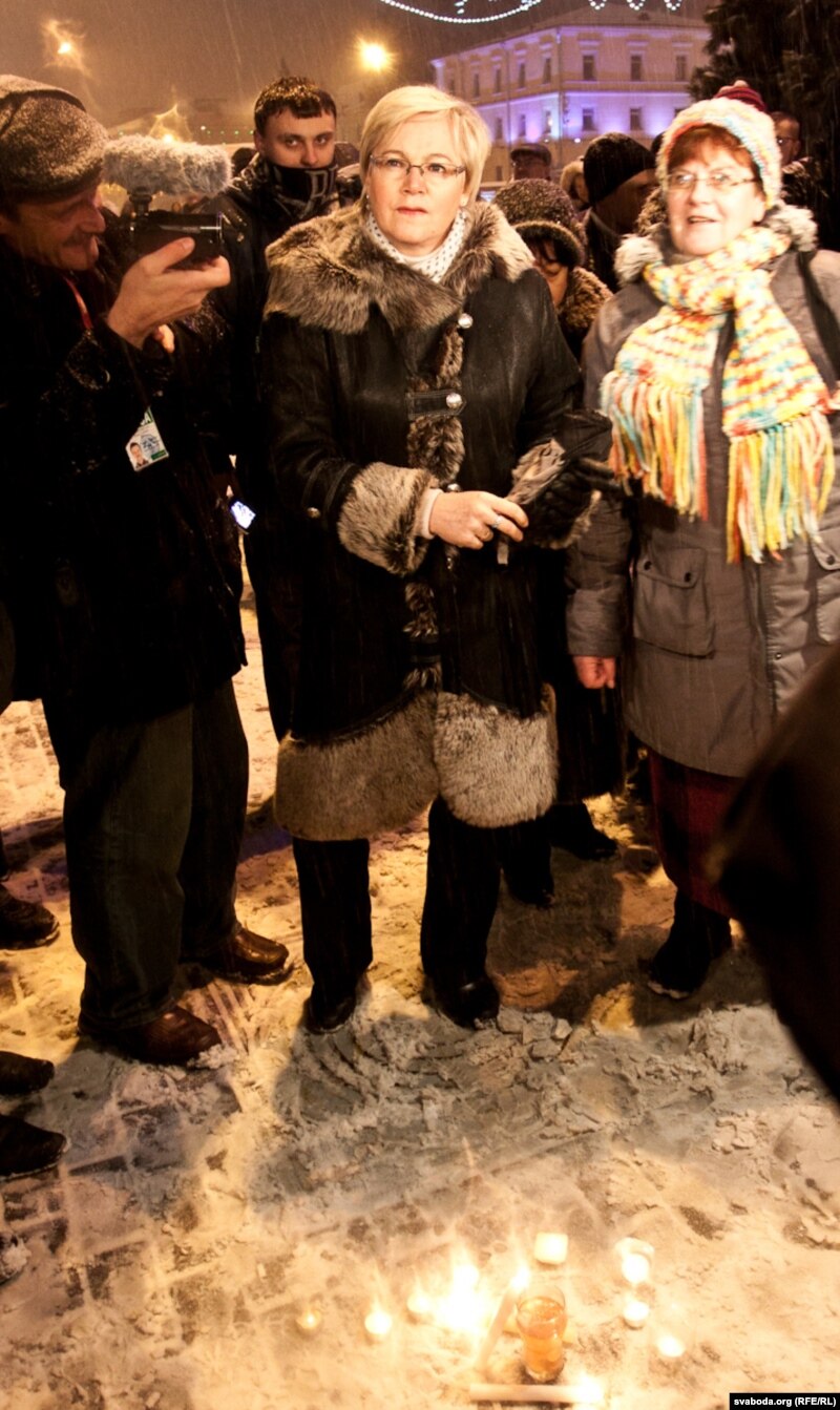 Дзьве жанчыны запалілі сьвечкі на плошчы і сказалі, што прыйшлі ў знак салідарнасьці з арыштаванымі кандыдатамі ў прэзыдэнты. Яны сказалі, што не зьяўляюцца іх сябрамі ці сваякамі, а проста грамадзянкі краіны.