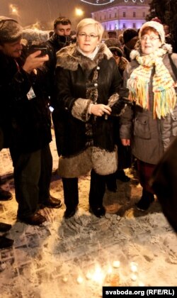 Спадарыня Вера: «Мы выйшлі ў імя тых людзей, якія ахвяравалі сабой, каб сьвет пачаў паважаць Беларусь. Някляеў, Саньнікаў, Міхалевіч, Статкевіч, Халіп і гэтак далей. Там каля 30 чалавек цяпер знаходзіцца. Натуральна, мы стала сочым за сытуацыяй, перажываем. І толькі спадзеў на сусьветную супольнасьць, што нам дапамогуць, на Эўразьвяз, што нам дапамогуць нешта зьмяніць. Самі мы тут, відаць, нічога ня зробім».