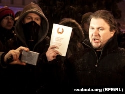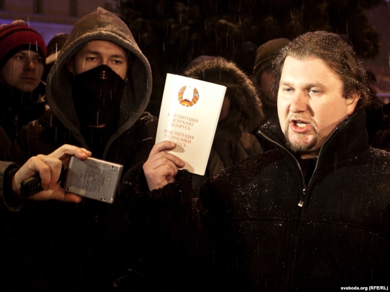 «Грамадзянін Аляксандар Лукашэнка, паклаўшы руку на Канстытуцыю, а, магчыма, і ня толькі руку, як пісалі ў інтэрнэце, прынёс, прынамсі як ён лічыць, прысягу прэзыдэнта Рэспублікі Беларусь.У сваю чаргу я кладу руку на канстытуцыю, трымаю яе ў руцэ, і кажу, што я прысягаю ніколі не прызнаваць Аляксандра Лукашэнку легітымным правіцелем гэтай краіны, ніколі не прызнаваць яго прэзыдэнтам. Прызнаваць яго толькі ўзурпатарам, які незаконна ўтрымлівае ўладу ў сваіх руках».