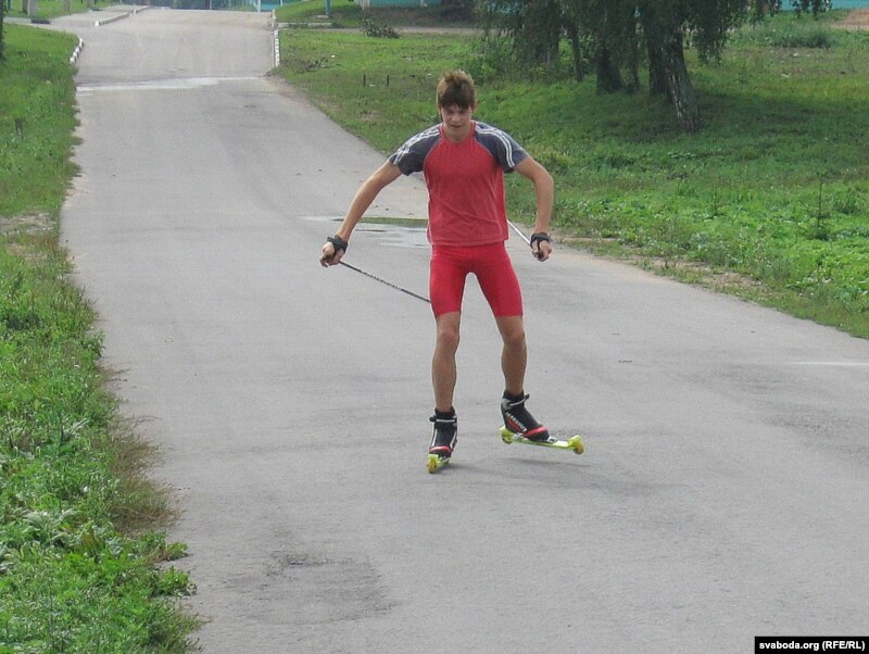 Нашу размову перарваў спартсмэн у форме лыжніка, які ляцеў на ролерах па пустэльнай, дарэчы, пасярод працоўнага дня шашы. Праз сотню мэтраў убачыў трэнэра і бацьку 16-гадовага Лёшы — спадара Алега Рылькова. Той распавёў, што сын кожную трэніроўку «набягае» па 30 км, дзякуючы акурат таму, што ніякага дарожнага руху ў «перадавой» вёсцы не назіраецца.