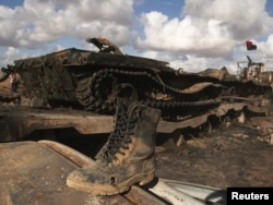 Лібія: танк, зьнішчаны авіяўдарам НАТО