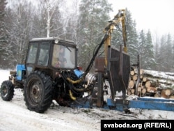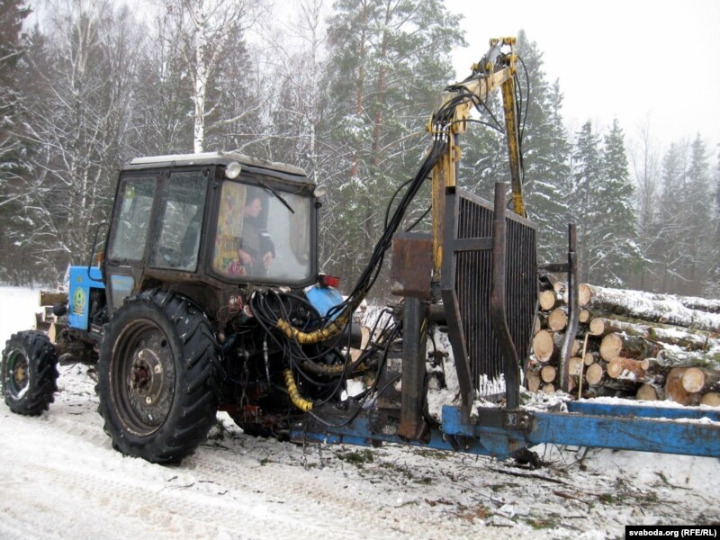 На зваротным шляху празь лес убачылі трактар, што ўкладаў сьпілаванае бярвеньне на прычэп. Кароткая размова з маладым кіроўцам пры нявыключаным маторы.