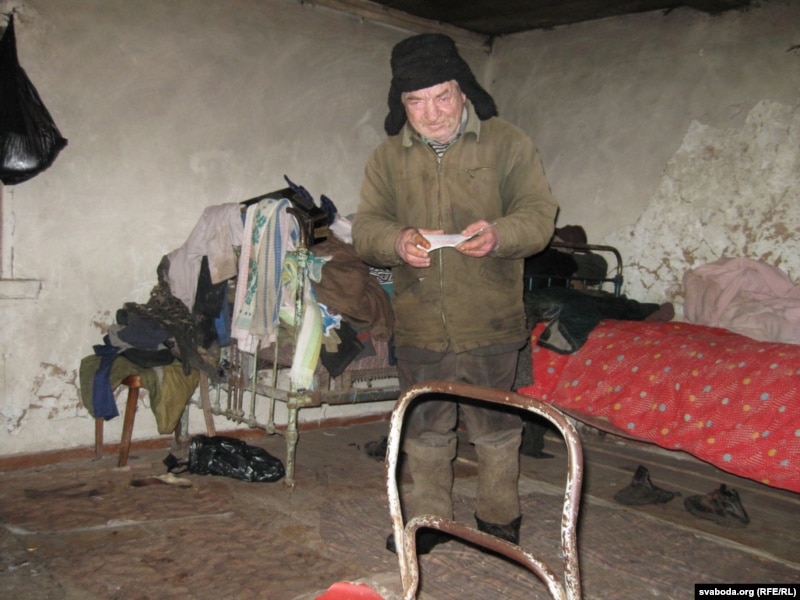 Бабулі голасна хваляць «дзеда Міколу», які штодзень самым нямоглым дапамагае па гаспадарцы. Празь які кілямэтар зайшлі ў «хібару» 67-гадовага Мікалая Кузьмянкова. Пакой зь невысокай стольлю, абадранымі сьценамі, жалезным ложкам ды раскіданым «шмацьцём». А вось і гаспадар — выглядае сапраўды «дзедам», з абветраным, рагавічным тварам — сядзіць пасярод хаты ў валёнках ды шапцы-вушанцы — чысьціць бутэлькі.