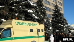 У сваю чаргу беларускія грамадзяне заяўляюць, што малы (у параўнаньні са сьнежнем мінулага года) попыт на даляры тлумачыцца адсутнасьцю ў людзей беларускіх рублёў, каб набываць валюту. Гутару з наведнікамі банку: