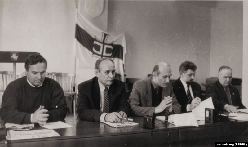 Ценявы кабінэт БНФ: Сяргей Антончык, Іван Нікітчанка, Зянон Пазьняк, Сяргей Навумчык, Уладзімер Заблоцкі. 1994 год.