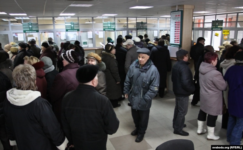 Нягледзячы на атсутнасць валюты, адзьдзяленьні банку перапоўненыя