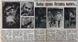 (у фотарэпартажы быў толькі адзін пазнавальны твар – Пазьняка. Ніякай пены, зразумела, не было, тут ўжо чытач мусіў паверыць аўтару)