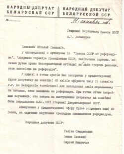 Калі у студзені 1991 г. старшыня ВС Мікалай Дземянцей узьняў пытаньне пра рэфэрэндум аб захаваньні СССР на сэсіі Вярхоўнага Савету, Апазыцыі БНФ удалося заблякаваць галасаваньне, і пытаньне нават не было ўнесенае ў павестку дня сэсіі.