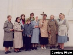 Ганна і Вітаўт Сіўчыкі (у цэнтры) — удзельнікі штодзённых малітваў пад сьценамі касьцёла Сьвятога Юзафа. 2005.