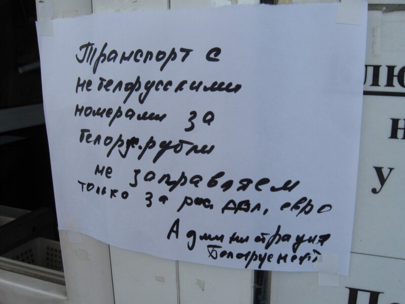 Такі парадак, калі на тэрыторыі Беларусі ня дзейнічае беларуская нацыянальная валюта, выклікае вялікае непаразуменьне ледзь ня ў кожнага кіроўцы, хто заяжджае на аўтазапраўку.