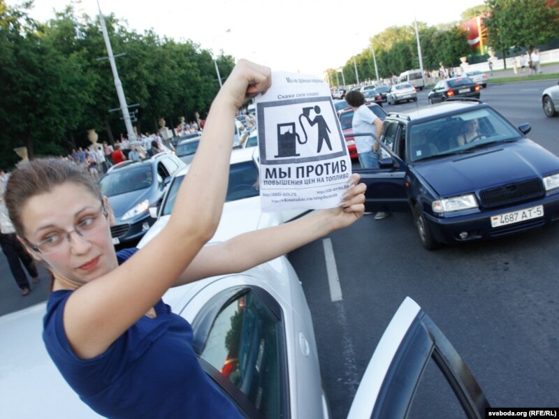 На знак пратэсту супраць неадэкватнага кошту на паліва дзясяткі кіроўцаў выехалі на цэнтральны праспэкт Незалежнасьці. Сабраўшыся ў супрацьлеглых кропках Менску, двума калёнамі аўтааматары на мінімальных хуткасьцях рушылі насустрач адзін аднаму, пасьля чаго сустрэліся ў раёне плошчы Перамогі. Цягам двух гадзінаў з уключанымі кляксонамі і аварыйнымі сыгналамі аўтааматары езьдзілі па цэнтральным праспэкце сталіцы. Кіроўцы пачалі хаатычна спыняцца ў розных палосах руху, адчынялі капоты і багажнікі, даставалі пустыя каністры з аўтамабіляў, у якіх нібыта скончыўся бэнзін.