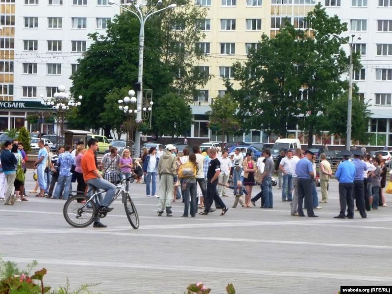 На плошчы дзяжурылі каля дзясятка міліцыянтаў у форме і ня менш як два дзясяткі людзей у цывільным. На акцыю прыйшоў і сам начальнік міліцыі грамадзкай бясьпекі абласной управы МУС Ігар Скарыновіч.