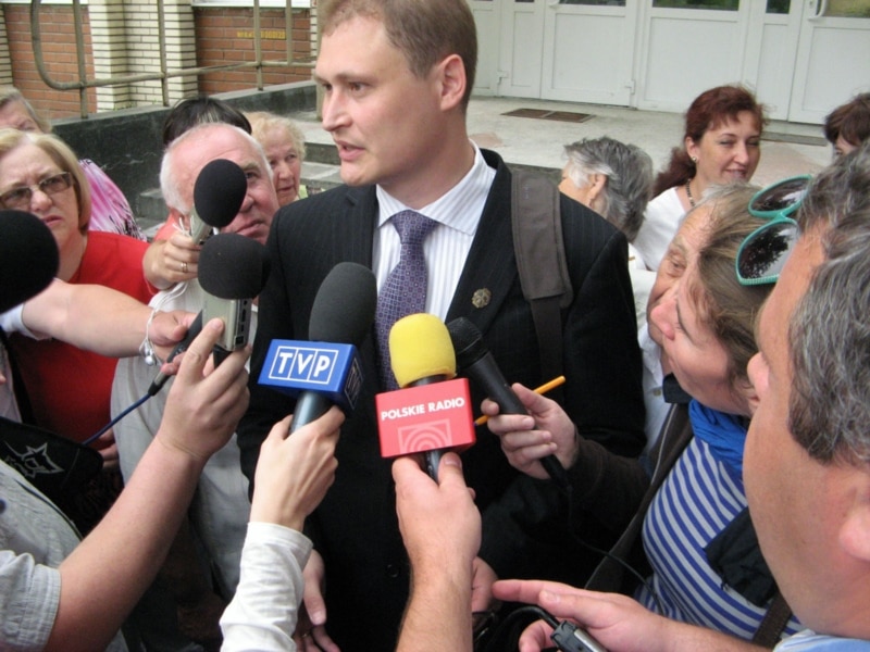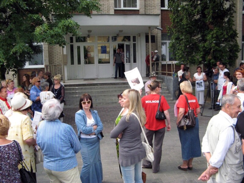 10.30 Выканаўца абавязкаў старшыні Саюза палякаў Анжаліка Арэхва зьвярнулася да прысутных каля суду. Яна сказала, што ёй патэлефанавалі з Варшавы і паведамілі, што каля беларускай амбасады ў Польшчы адбываецца акцыя пратэсту супраць суду над Андрэем Пачобутам. Удзельнікі пікету ў Варшаве патрабуюць: "Свабоду Пачобуту!".