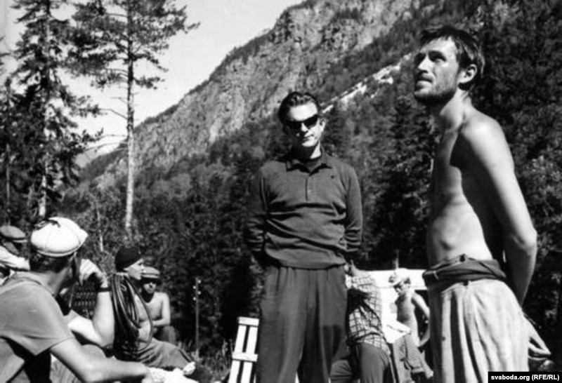 Васіль Быкаў і Станіслаў Любшын на здымках «Альпійскай баляды».
