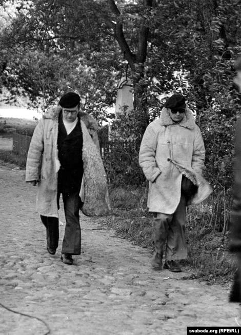 Васіль Быкаў і рэжысэр Рычард Віктараў на здымках фільма «Абэліск».