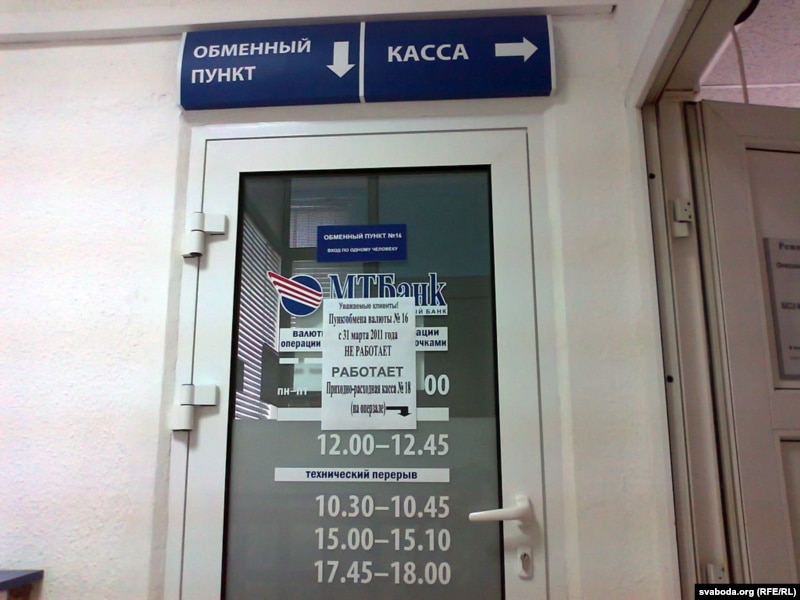 У пунктах абмену валют «Беларусбанку» і ўсіх камэрцыйных банкаў ужо некалькі месяцаў трываюць чэргі. Па-ранейшаму каля «абменьнікаў» застаюцца некалькі дзяжурных, якія кантралююць чаргу зь некалькіх дзесяткаў і нават сотняў чалавек. Гутару зь людзьмі: