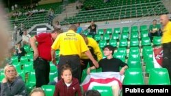 На чэмпіянаце Эўропы па баскетболе ў Быдгашчы група беларускіх заўзятараў была выдаленая з матчу з-за бела-чырвона-белых сьцягоў, паведамілі Радыё Рацыя і Эўрарадыё.