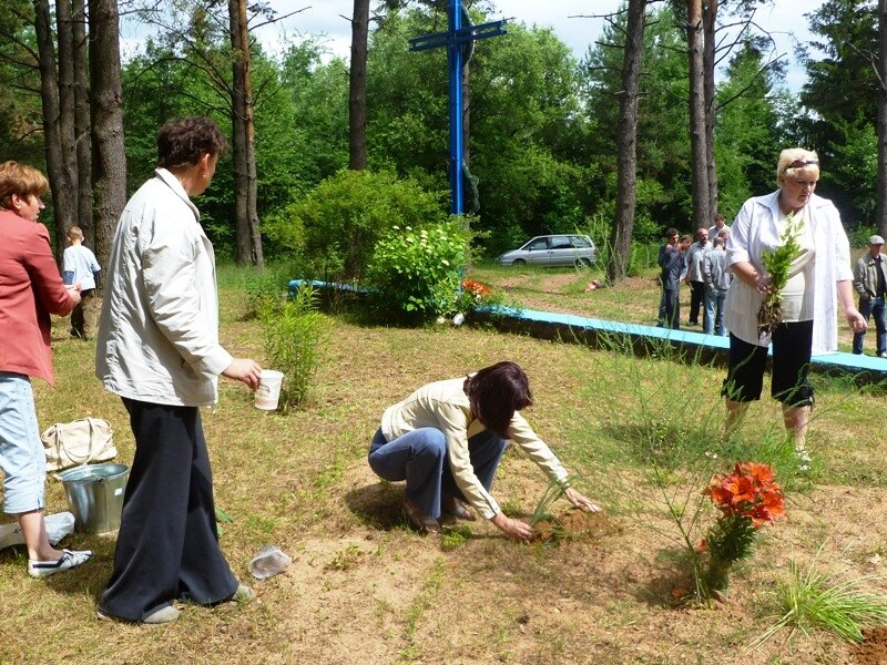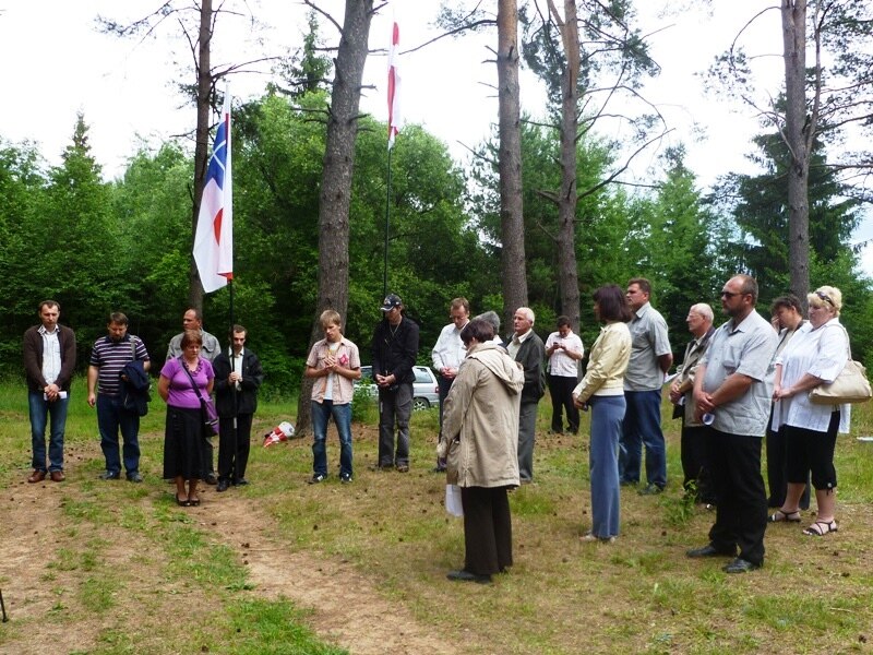 Да віцебскіх актывістаў далучыліся менскія прыхільнікі БХД, якія адмыслова прыехалі ў гэтыя мясьціны, каб памаліцца за супакой душы кожнага расстралянага вязьня – па розных зьвестках, на ўзьлеску каля вёскі Макалаева загінулі ад 800 да дзьвюх тысяч чалавек.
