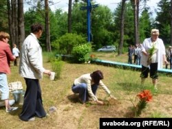 Актывісты, якія прыехалі ў Мікалаева зь Віцебску, Воршы, Глыбокага, Паставаў, Бешанковічаў, пасадзілі кветкі, усклалі вянкі, запалілі сьвечкі і памаліліся за ахвяраў Беразьвецкай трагедыі.