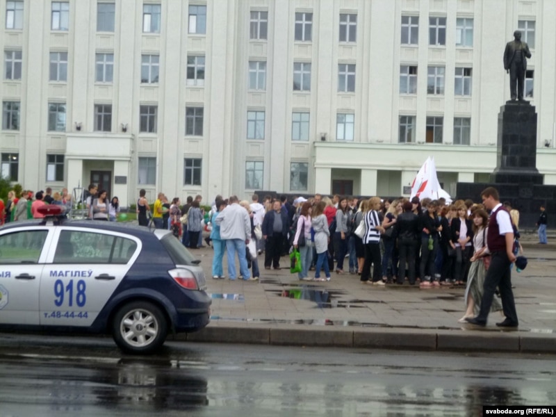А 19 гадзіне на магілёўскай плошчы Леніна ў традыцыйны час збору ўдзельнікаў маўклівай акцыі пратэсту пачалося БРСМаўскае мерапрыемства «Дарогамі вайны». Плошчу не ачапілі міліцэйскім спэцназам, як гэта было ў мінулыя дзьве серады. Тым ня менш міліцыянты на плошчы былі. Першымі на яе прыйшлі маладзёны ў саколках з надпісам «БРСМ» і афіцыйнай сымболікай. Акцыю пільнавалі чыноўнікі й міліцэйскае начальства.
