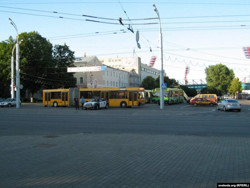 Прывакзальную плошчу кантралявалі супрацоўнікі ДАІ, не пускаючы туды прыватны транспарт.
