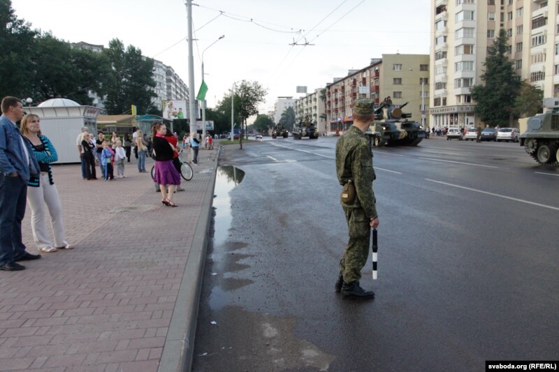 Кожны раз, як танкавая калёна праходзіць па Менску, яе суправаджае камунальны транспарт. Спадар Жамозьдзік распавёў, як гэта выглядае: