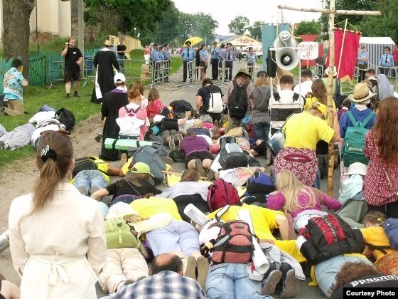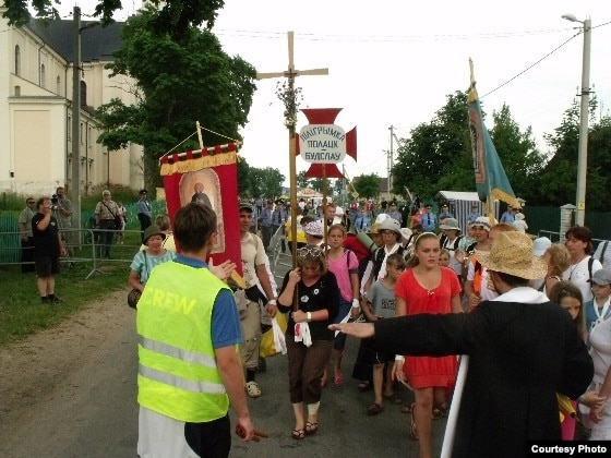 У вёсцы Будслаў Мядзельскага раёну сёньня распачынаюцца ўрачыстасьці з нагоды сьвята абраза Маці Божай Будслаўскай. На падыходах да месца правядзеньня ўрачыстасьцяў пілігрымы Віцебшчыны правялі акцыю пратэсту. Вернікаў абурылі дзеяньні міліцыянтаў, якія забаранялі людзям мець пры сабе парасоны. Група вернікаў каля тысячы чалавек сталі на калені і прасьпявалі малітоўны гімн «Магутны Божа».