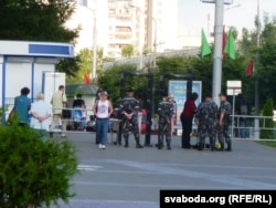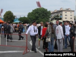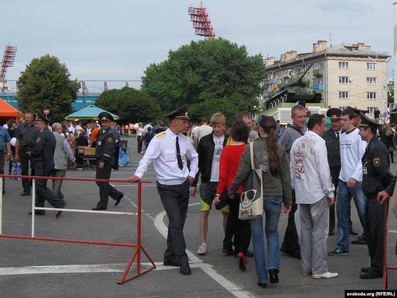 Міліцыянты й людзі ў цывільным — а іх было некалькі дзясяткаў — і блізка не падпускалі людзей да пляцоўкі Дома культуры «Віпра», дзе меліся сабрацца мінакі на нефармальны мітынг.