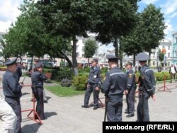 За тымі, хто прыйшоў на плошчу, назіралі некалькі міліцыянтаў у форме і ў цывільным. Назіральнікі з відэакамэрай уладкаваліся нават на даху аднаго з бліжэйшых да плошчы жылых дамоў.