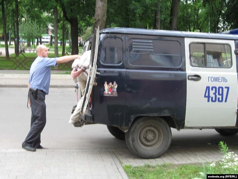 Па абедзе судзьдзя Алена Цалкова пакарала арыштам на 15 сутак Руслана Ўсьціменку. Студэнта-філёляга завочнага факультэту ўнівэрсытэту імя Ф.Скарыны міліцыя затрымала ўжо трэці раз. У чэрвені ён быў пакараны штрафам у памеры 770 тысяч рублёў за маўклівую акцыю на плошчы Леніна. Пайшоў у чаргу купляць дзяўчатам квас і марозіва, а калі вярнуўся — яго й забралі.