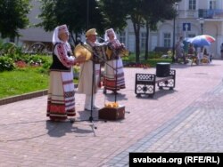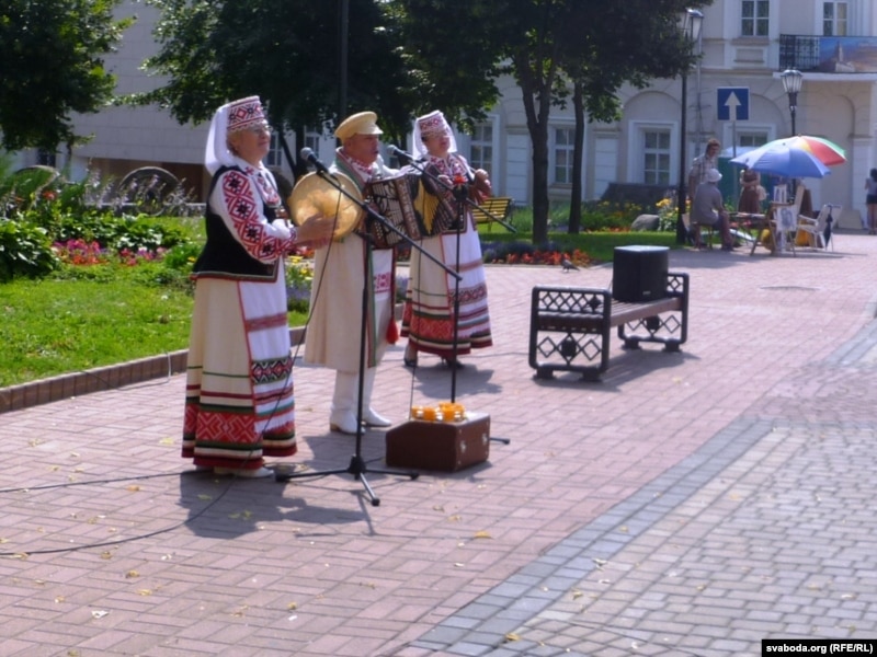 Яшчэ на гэтых «падворках» выступаюць самадзейныя мастацкія калектывы ў народных строях — і гэта бадай што адзінае месца на «Славянскім базары», дзе можна пачуць беларускую мову.